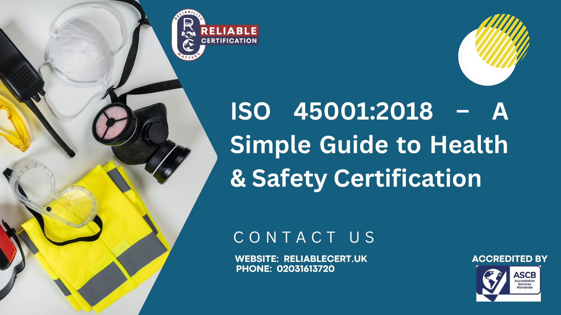 Your business needs a solid framework for risk management and shows better commitment towards health and safety. Reliable Certification can help. Learn more about ISO 45001:2018 and what it can do for your organization. Get a quote today!